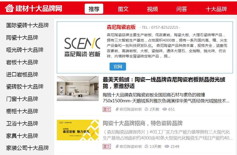 百度作為國(guó)內(nèi)TOP 1搜索引擎,森尼陶瓷·巖板進(jìn)行了百度權(quán)威認(rèn)證。從官網(wǎng)官方標(biāo)識(shí)——升級(jí)百度百科——優(yōu)化搜索關(guān)鍵詞,三大驅(qū)動(dòng)展現(xiàn)品牌公信力,彰顯大牌風(fēng)范。