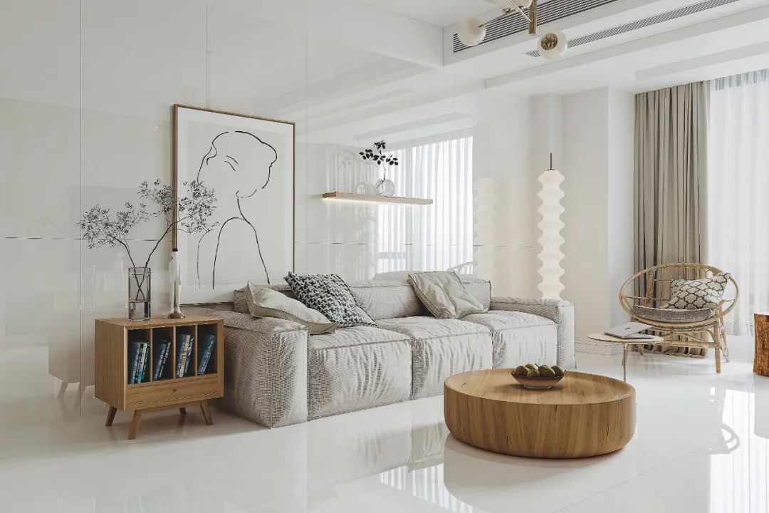 亮面侘寂風格少些暗面,多些清新明亮。桌椅軟飾遵循侘寂風簡潔裝飾,自由隨性中增加舒適感。