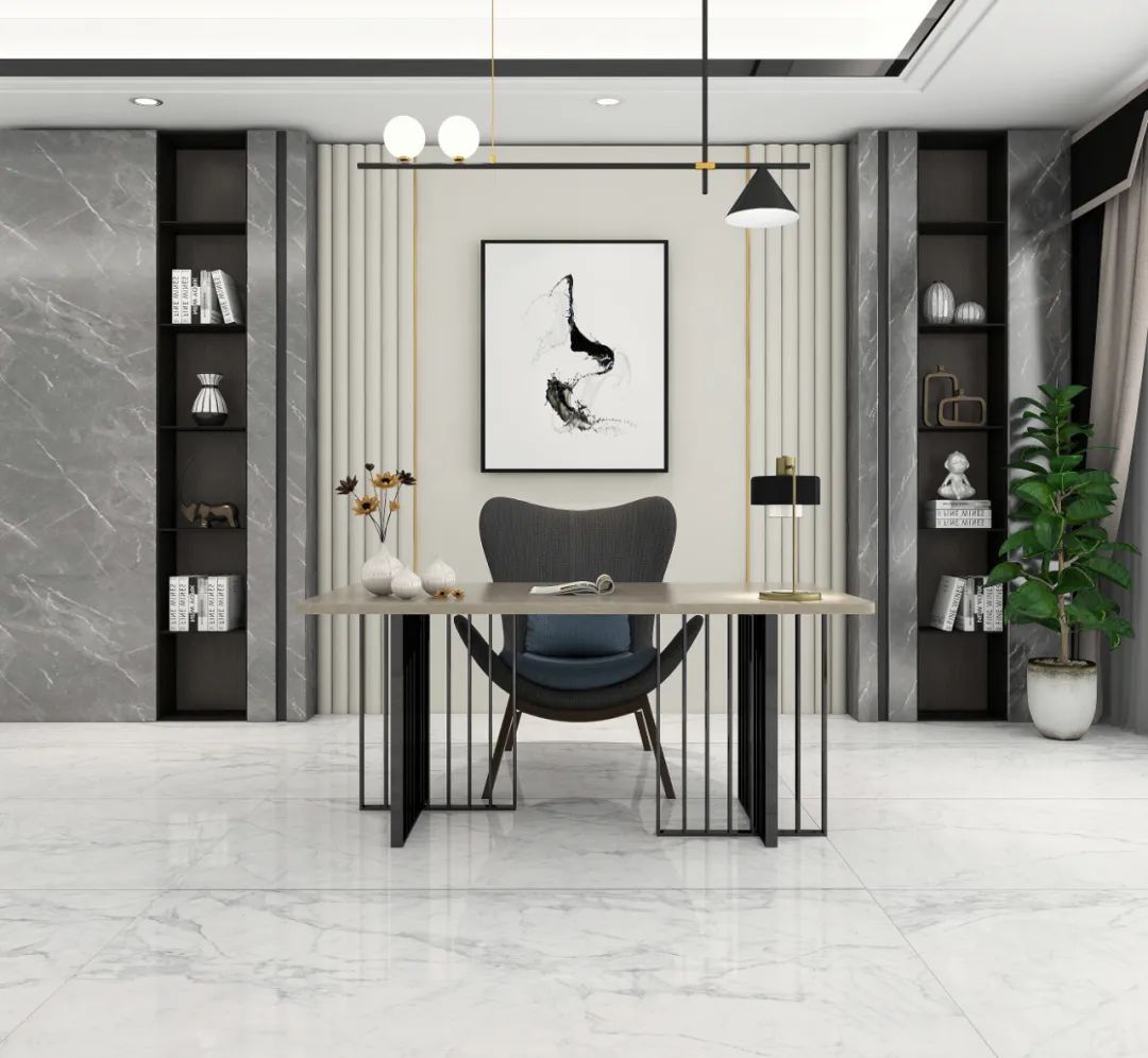 森尼大花白大理石源自意大利天然石材大花白紋理,將天然石材的細膩質感,復制于瓷磚表面,質地溫潤,如玉石般清澈純潔。